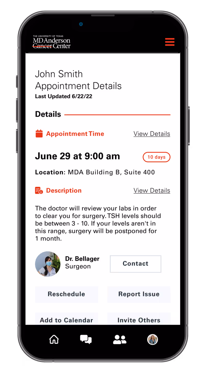Agency39A developed a mobile application that dramatically improved MD Anderson's communication, reducing patient confusion and frustration. This innovation boosts patient and caregiver confidence and empowerment. Enhanced transparency and staff communication efficiency allow MD Anderson to swiftly identify and resolve obstacles, resulting in a less stressful experience for both patients and staff. This project showcases Agency39A's expertise in creating impactful digital solutions for healthcare.
